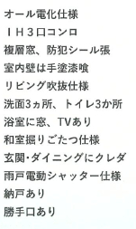 | 特 色 | 駐車場、公営水道、公共本下水、オール電化、角地、南道路、前面道路幅員6.7m、全居室6帖以上、ペアガラス、給湯、食器洗浄乾燥機、IHクッキングヒーター、2階トイレあり、売主の瑕疵担保責任免、納戸、屋根裏収納庫、契約不適合責任免除 | |||||||||||||||||