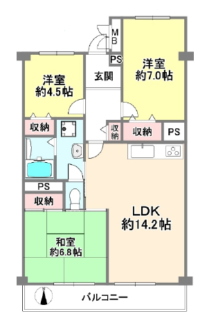 | バルコニ面積 | 7.35m² | バルコニ方向 | 南 |
