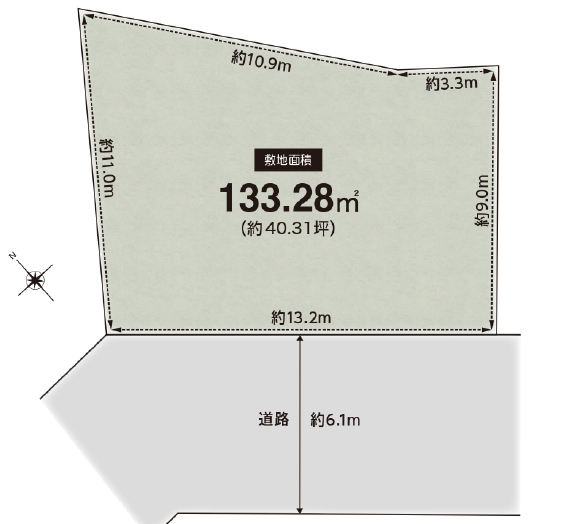 | 私道面積 | - | 接道 | 南西 6.1m(幅員) 公道 位置指定無 13.2m(接面) |