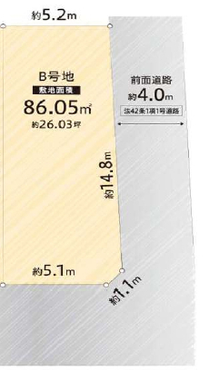| 接道 | 南 6m(幅員) 公道 5.1m(接面) 東 4m(幅員) 公道 14.8m(接面) |