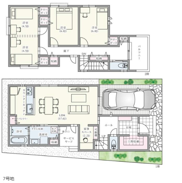 | 間取詳細 | (1階)LDK17.6、(2階)洋6、洋6、洋9 |