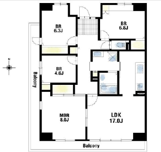 間取詳細 | LDK17、洋8、洋6.8、洋6.3、洋4.6 |