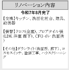 特色 | 角部屋、駐車場、都市ガス、エレベータ、二階以上、南バルコニー、給湯、温水洗浄便座、浴室暖房乾燥機、リフォーム履歴あり、空家、期日指定あり |