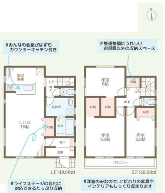 間取詳細 | (1階)LDK18、(2階)洋8.5、洋6.5、洋6 |