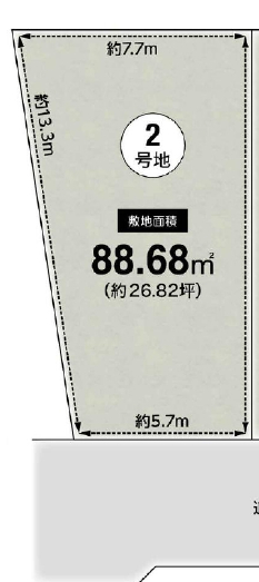 | 特色 | 建築条件なし、公営水道、公共本下水、都市ガス、電気、高低差なし、更地 |