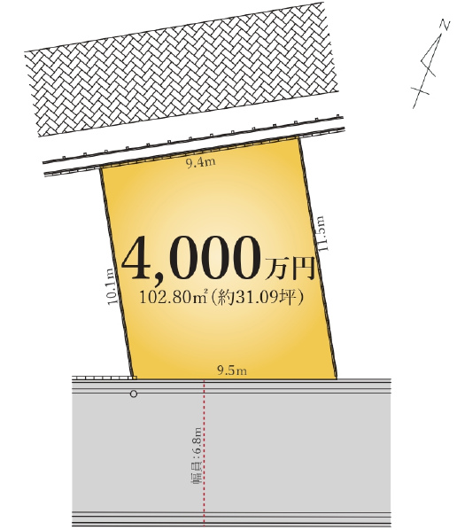 | 接道 | 南 6m(幅員) 私道 9.5m(接面) |