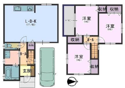 | 間取詳細 | (1階)LDK17.1、(2階)洋6、洋6、洋6 |