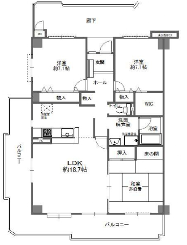 | 間取詳細 | LDK18.7、和8、洋7.1、洋7.1 |