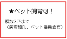 | 特色 | ペット飼育可、都市ガス、角部屋、二階以上、エレベーター、オートロック、トランクルーム、給湯、温水洗浄便座、契約不適合責任免除 |