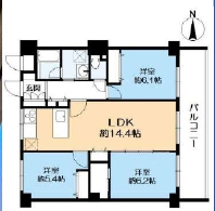 間取詳細 | LDK14.4、洋6.2、洋6.1、洋5.4 |