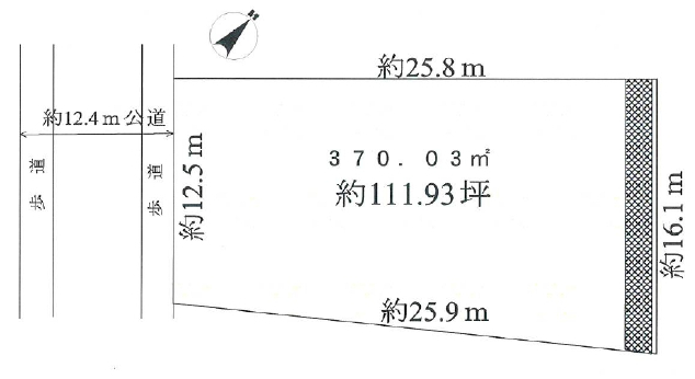 | 接道 | 西 12.4m(幅員) 公道 12.5m(接面) |