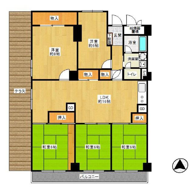 間取詳細 | LDK16、洋8、洋6、和6、和6、和6 |