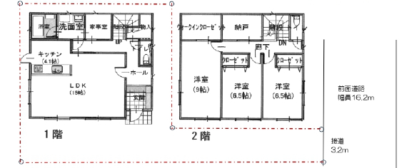 | 間取詳細 | (1階)LD15、K4.1、、(2階)洋9、洋6.5、洋6.5、納戸 |