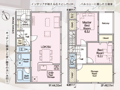 | 間取詳細 | (1階)LDK19、(2階)洋6.3、洋5.2、S6.2 |