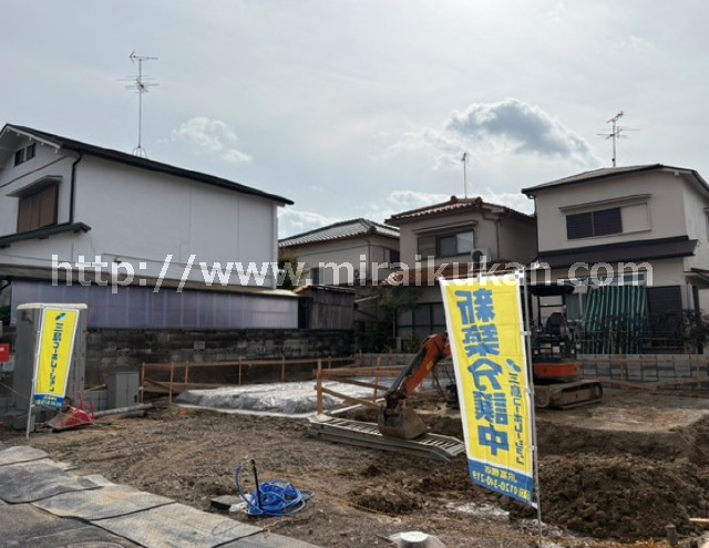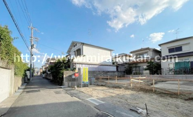 安岡寺町4丁目の閑静な住宅街です。2区画の西側・土地面積約32.08坪の整形地です。2026年1月完成予定・建物面積:90.72㎡・3LDKの間取りです。ガレージ2台駐車可能です。