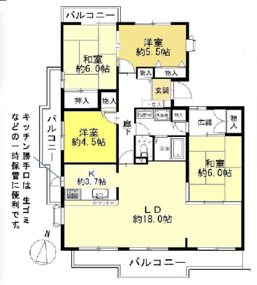 | 間取詳細 | LD18、K3.7、和6、和6、洋5.5、洋4.5 |