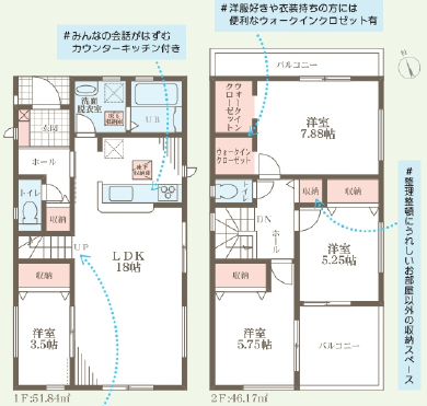 | 間取詳細 | (1階)LDK18、洋3.5、(2階)洋7.88、洋5.75、洋5.25 |