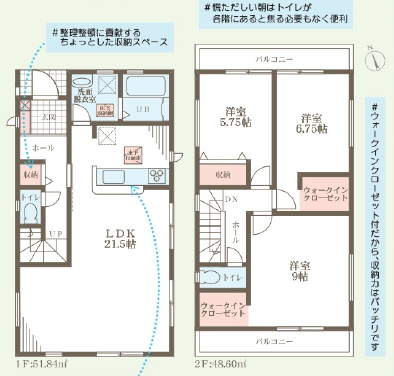 | 間取詳細 | (1階)LDK21.5、(2階)洋9、洋6.75、洋5.75 |