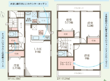 | 間取詳細 | (1階)LDK16、洋3.75、(2階)洋8、洋6.5、洋5.75 |