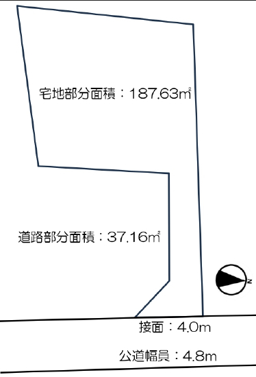| 接道 | 東 4.8m(幅員) 公道 4m(接面) |