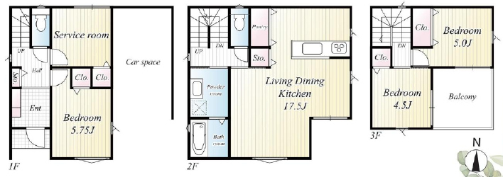 | 間取詳細 | (1階)洋5.75、S、(2階)LDK17.5、(3階)洋5、洋4.5 |