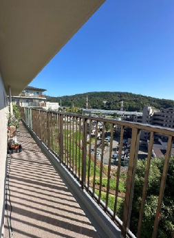 サンハイツ高槻9号棟 4階・東南角部屋のお部屋です。南・東・北の三面バルコニーで陽当り・通風良好です。