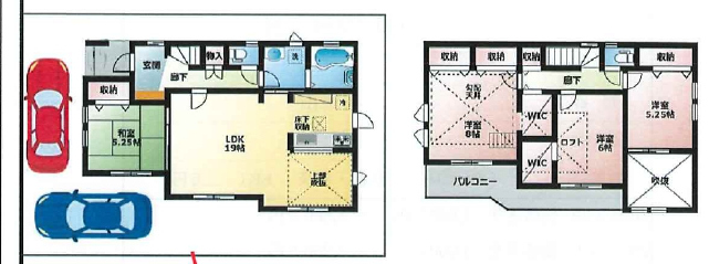 | 間取詳細 | (1階)LDK19、和5.23、(2階)洋8、洋6、洋5.25 |