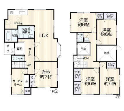 | 間取詳細 | (1階)LDK、洋7、S、(2階)洋6、洋6、洋6、洋6 |