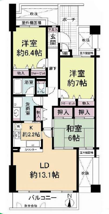 | 間取詳細 | LD13.1、K2.2、和6、洋7、洋6.4 |