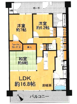 | 間取詳細 | LDK16.8、和6、洋7、洋5.2 |