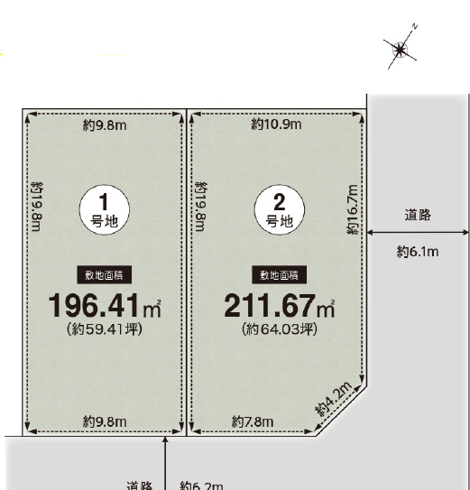 | 接道 | 南東 6.2m(幅員) 公道 9.8m(接面) |