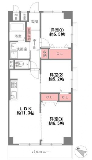 | 間取詳細 | LDK11.3、洋6.5、洋5.5、洋5.2 |
