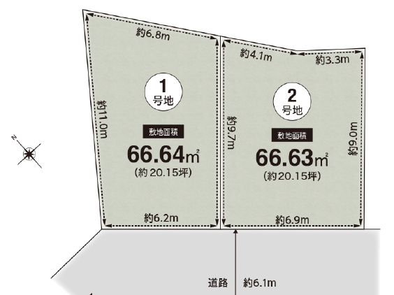 | 接道 | 南西 6.1m(幅員) 公道 位置指定無 6.9m(接面) |