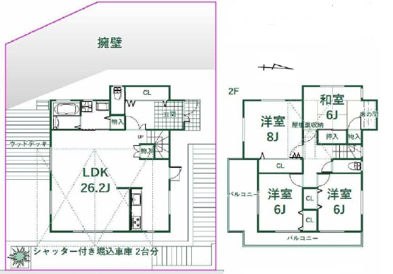 | 間取詳細 | (1階)LDK26.2、(2階)洋8、洋6、洋6、和6 |