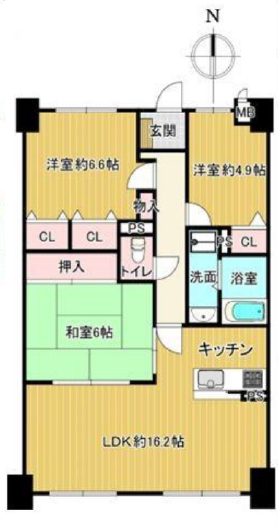 | 間取詳細 | LDK16.2、和6、洋6.6、洋4.9 |