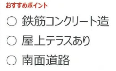 | 特色 | 駐車場、公営水道、公共本下水、都市ガス、南道路、全居室6帖以上、給湯、温水洗浄便座、カラーモニター付インターフォン、空家、即入居可 |