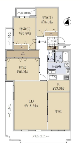 バルコニー面積 | 17.88m2 | バルコニー方向 | 南・西・北 | |||||||||||||||