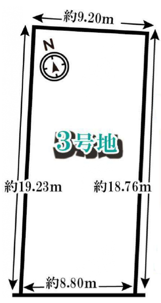 3区画の東側・土地面積:約51.73坪あります。建築条件付きですが自由設計できます。